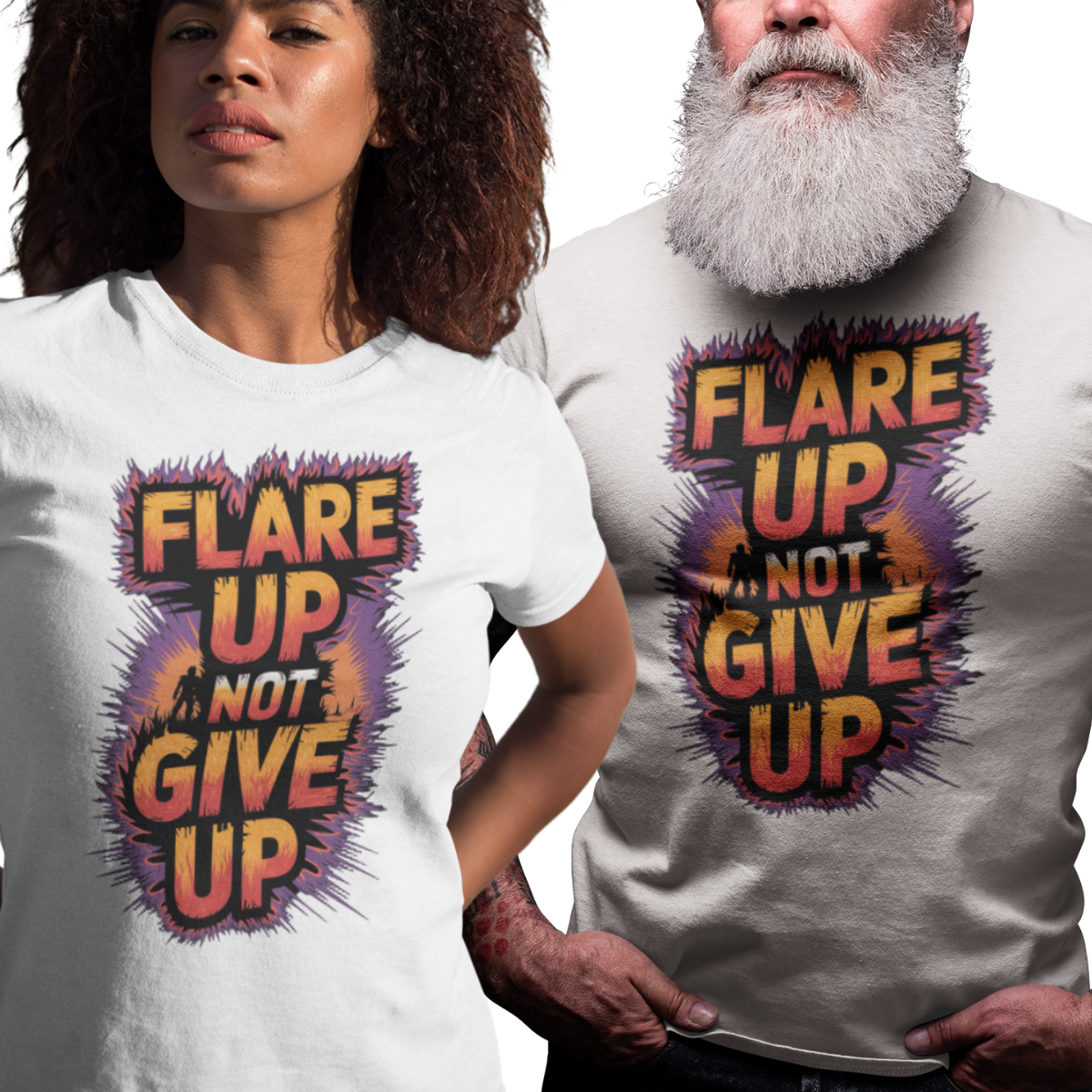 A warrior’s battle cry. The Flare Up, Not Give Up tee captures the resilience of lupus warriors who face flares with fire, courage, and strength.